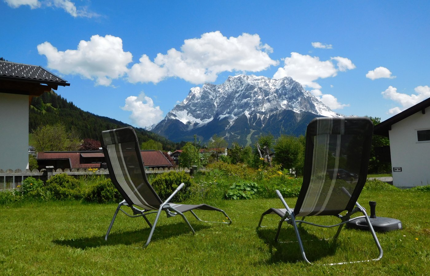 in ruhiger, sonniger Lage mit schönem Ausblick auf die Zugspitze, Sonnenspitze und den Grubigstein.